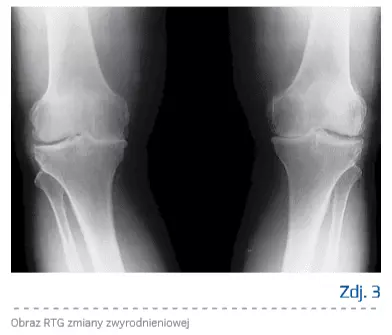 W przypadku reumatoidalnego zapalenia stawów uzyskano ewidentne efekty zmniejszenia procesu zapalnego, jednak wobec wątpliwości, co do etiologii choroby zwyrodnieniowej stawów – czy proces zapalny występuje pierwotnie, czy też wtórnie – stosowanie preparatów niezdenaturowanego kolagenu typu II pozostawało przedmiotem dyskusji. W badaniach stwierdzono, że w przebiegu choroby zwyrodnieniowej przez błonę maziową są produkowane cytokiny, czynniki wzrostowe i prostaglandyny, co doprowadza do produkcji metaloproteinaz w komórkach macierzy chrząstki, co w dalszej kolejności skutkuje stopniową degradacją chrząstki w mechanizmie zapalnym [8]. Produkcja kolagenazy przez zmienioną zapalnie błonę maziową i aktywowane chondrocyty ma charakter samonapędzającego się mechanizmu wzmagającego autodegradację chrząstki i rozwoju choroby zwyrodnieniowej [9–11]. Wobec powyższego oprócz mechanizmu biomechanicznego, osteoporotycznego i metabolicznego należy wskazać także mechanizm zapalny i w zależności od etiologii stosować różną terapię – w przypadku pacjentów z zaburzeniami mechanicznymi należy pamiętać o leczeniu odciążającym, zmieniającym mechanikę stawu (redukcja masy ciała, odciążanie, wiskosuplementacja, leczenie operacyjne), w przypadku pacjentów ze schorzeniem o podłożu osteoporotycznym odpowiednia będzie farmakoterapia.