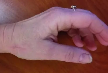 i przykurcze pojawiające się w sąsiednich palcach oraz drugiej ręce.